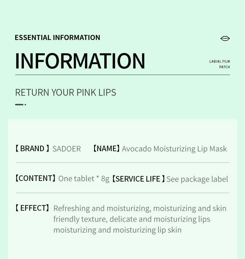 Full English Lip Mask SADOER Avocado Fruit Series Lip Mask